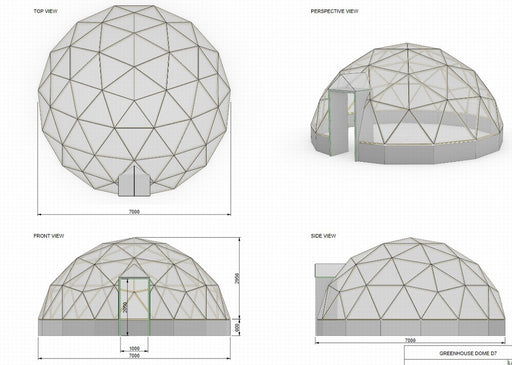- AISI steel support fixtures (to mount the dome to a base/terrace)